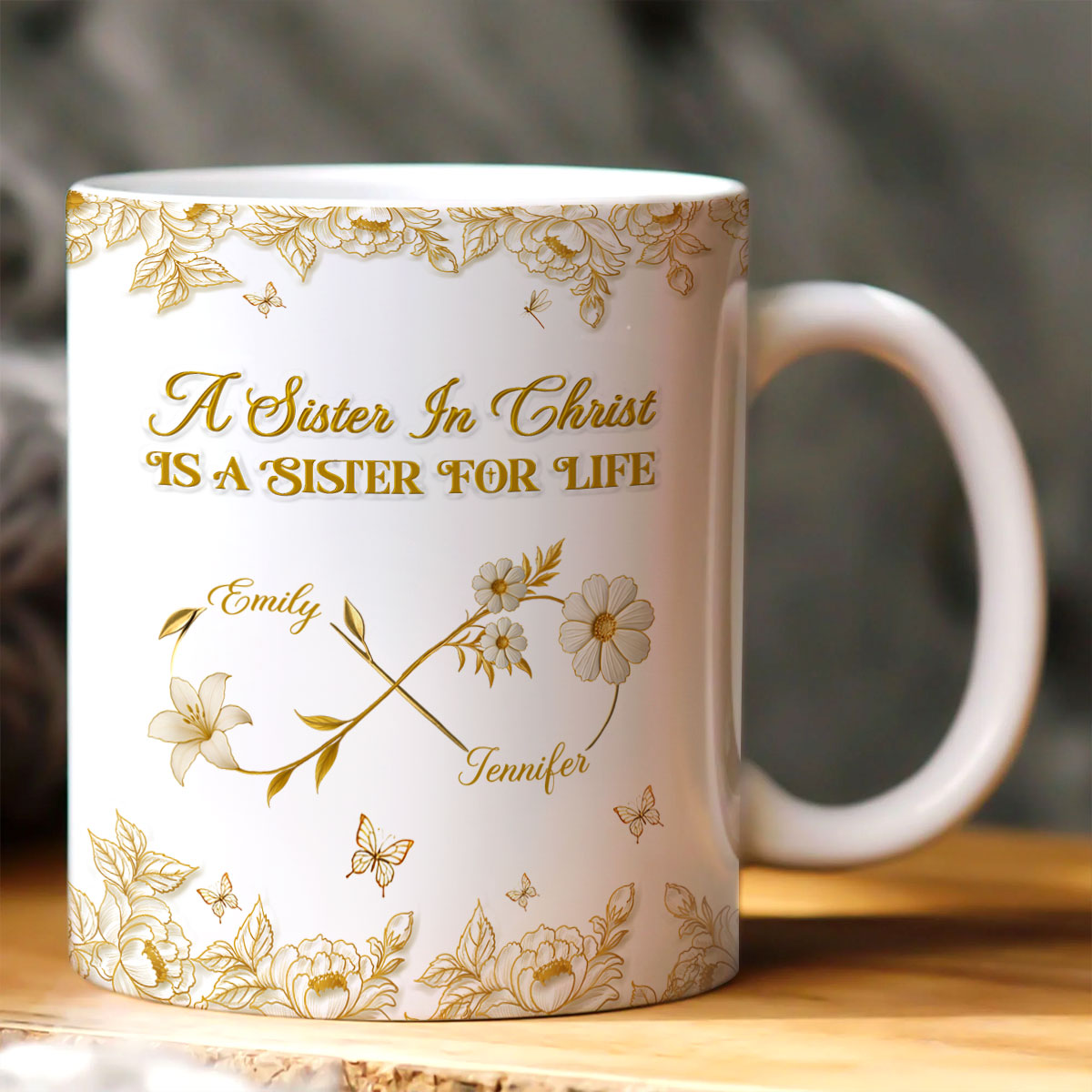 A Sister In Christ Is A Sister For Life - Custom 3D Inflated Effect Personalized White Edge-to-Edge Mug - Christian Gift