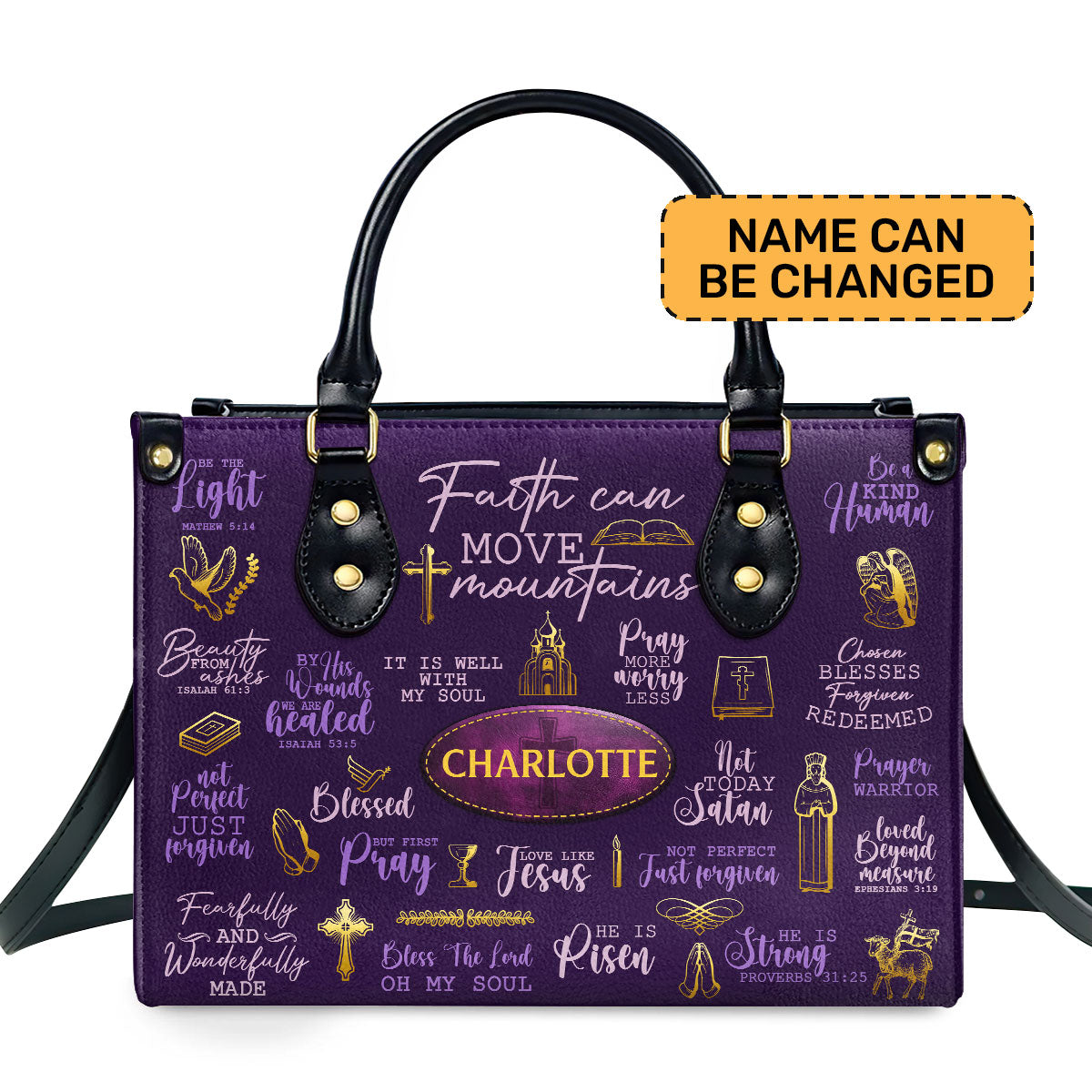 Faith Can Move Mountains Purple Bible Verses - Personalized Leather Handbag - Christian Gift For Women HD95