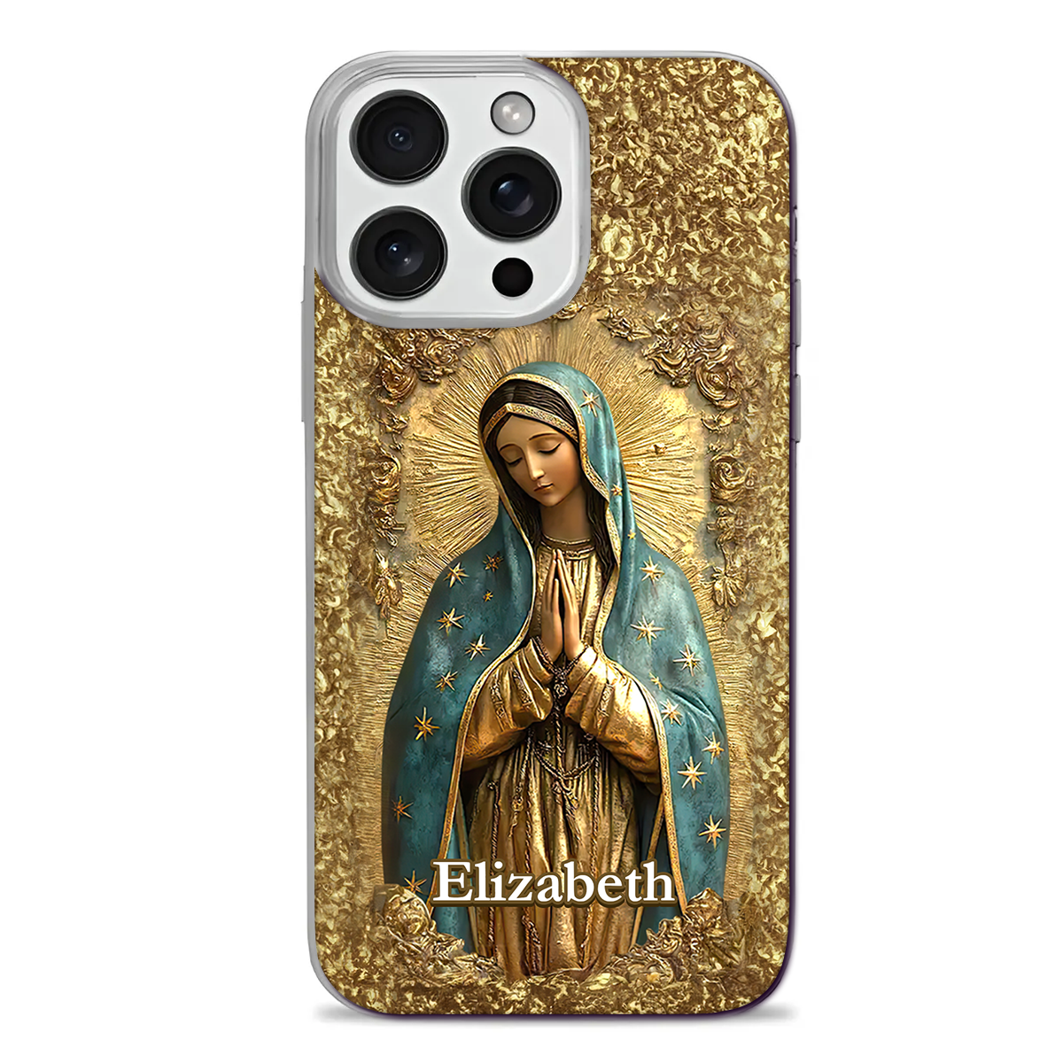 Gold Blessed Virgin Mary -Personalized Phone Case - Christian Gift BA01