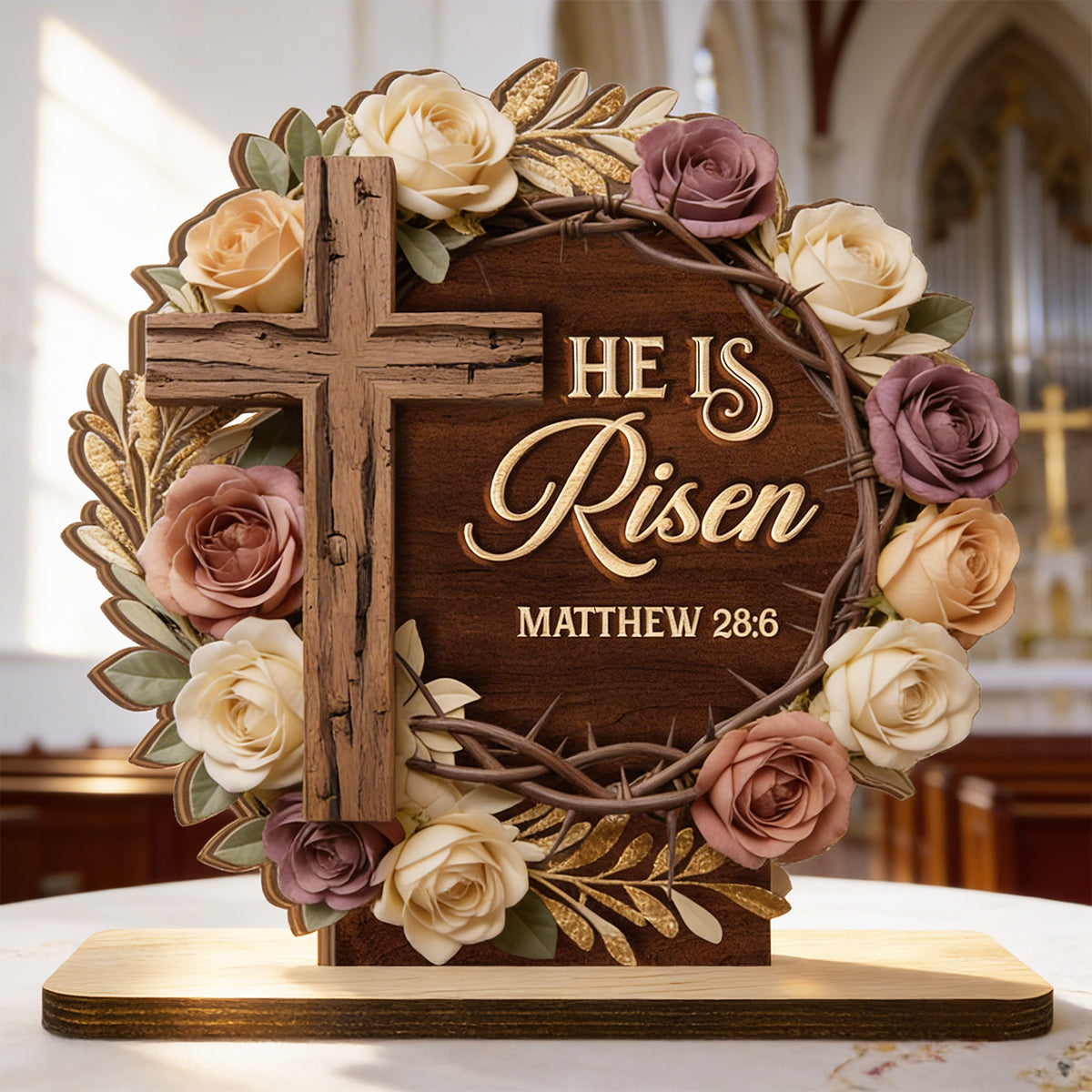 He Is Risen Matthew 28:6 - 2-Layer Wood Plaque - Christian Gift BA01